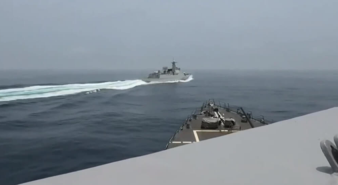 6月3日,美国“钟云”号驱逐舰、加拿大“蒙特利尔”号护卫舰强闯台湾海峡,被我052D驱逐舰阻拦。美国与加拿大方面却炒作称,中国军舰以危险动作拦截美舰,险些酿成两舰相撞事故。