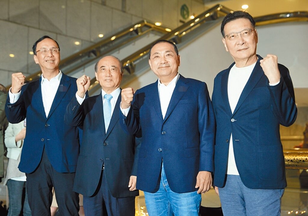 朱立伦(左)与侯友宜(右二)、赵少康(右)7日拜会王金平(左二)。(图片来源:台湾“中时新闻网”)