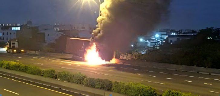 从现场画面可见,联结式卡车燃烧后,火势相当大,浓浓黑烟也直窜天际。对此,高速公路局中区养护工程分局表示,事故发生后无回堵情况,也呼吁路人小心驾驶。(编辑/王博伟)