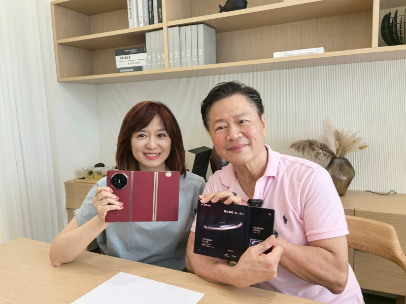 抢先试用华为三折叠屏机 周玉琴、赖岳谦惹台湾网友羡慕