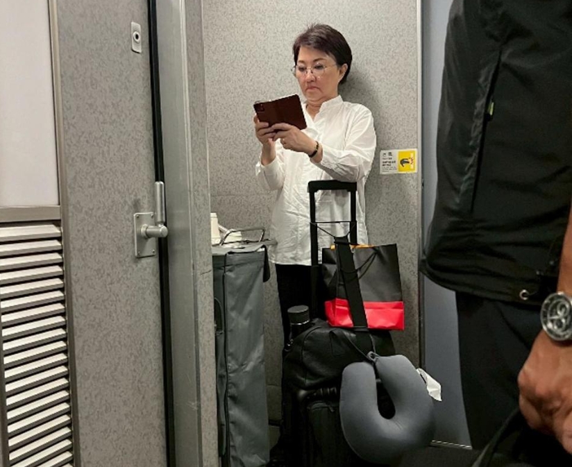 台中市长卢秀燕被拍到搭乘高铁站票。(图片来自网络)