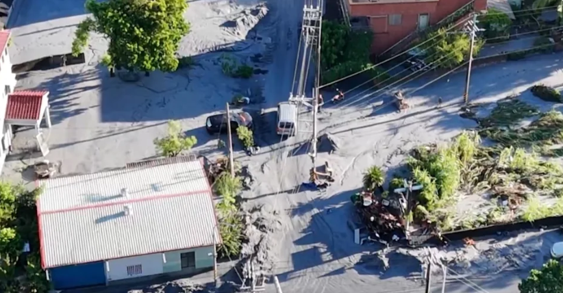 台湾花莲马太鞍溪堰塞湖23日溃坝,水淹光复乡酿成重灾。(图片来源:台湾“东森新闻”)