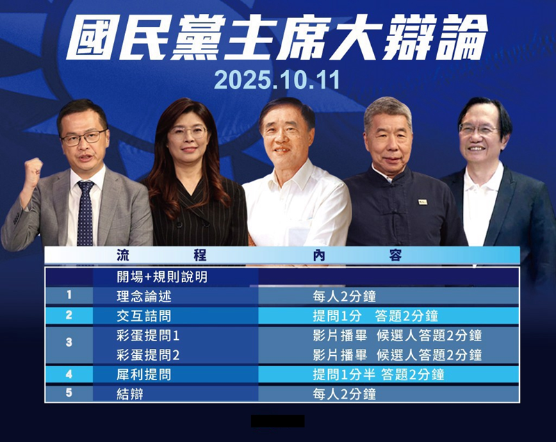 中国台湾网10月9日讯 据台媒“中时新闻网”报道,中国国民党主席选举投票前最后一场辩论会,将在10月11日星期六下午2点举行。