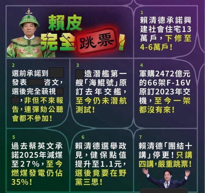 国民党团列赖清德7大承诺未兑现 “团结十讲”仅讲四讲亦在列