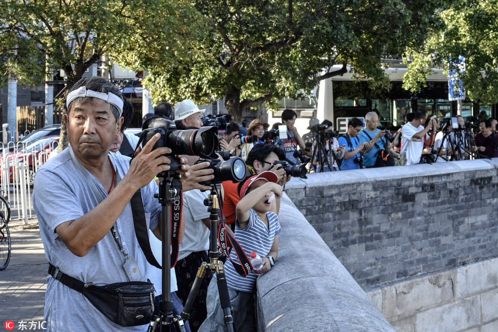 也有不少摄影爱好者高举着手机,来到角楼拍摄最佳视角。(图片版权:东方IC)