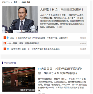 台湾《中时电子报》关于“全台大停电”的报道截图(部分):