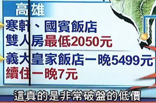 又比如,高雄的某饭店若要续住一晚仅需7元……