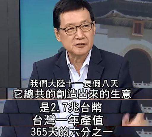 国民党“立委”费鸿泰就说了,大陆一个“黄金周”就能创造出2.7兆的产值,这可是台湾一年16兆产值的六分之一啊!