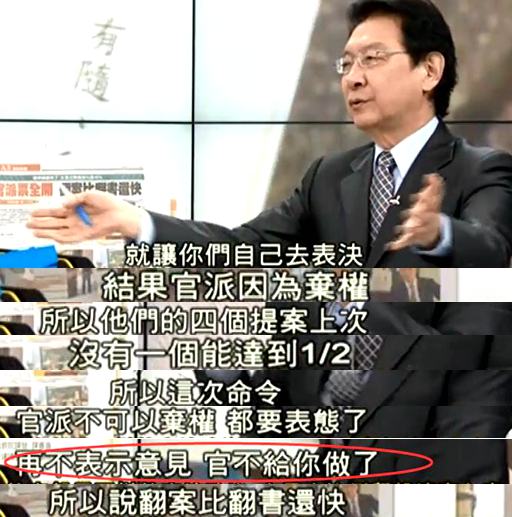 有这样困惑的绝对不止侃爷一个人,那我们来听听“知情人士”的解答吧:因为有蔡英文在啊,你的决议结果让我不高兴,那我就一定要让你表决到我想要的结果出来为止!
