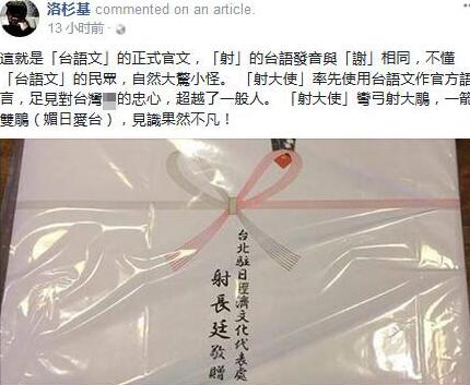 比如前不久,台湾“驻日代表”谢长廷在日本参加活动时,赠礼竟将谢长廷名字错成“射长廷”,引发了岛内媒体的热议,连台湾自由作家洛杉基都酸其说:这是“台语文”的正式官文,“射大使”果然不凡!