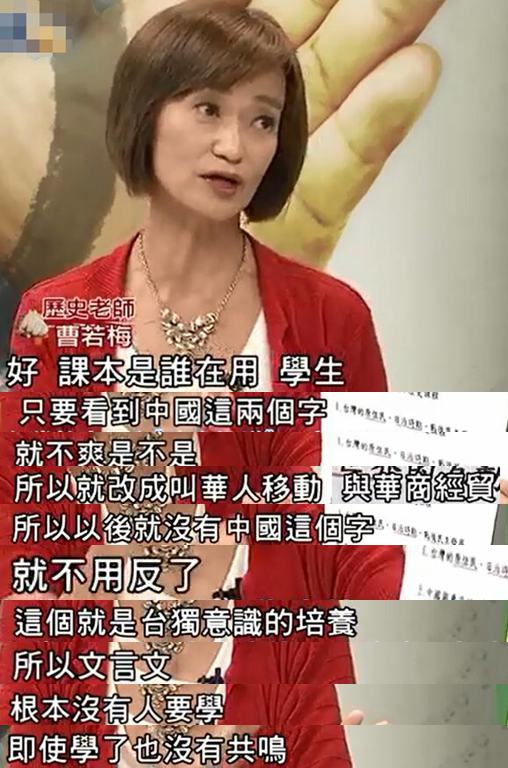 台湾的历史老师曹若梅则针对新课纲中的高中历史课程“重点思路”发表感慨:这根本就是“台独”意识的培养!