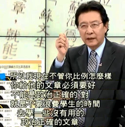 对此,有台媒人士也向蔡当局喊话:不管最后定的比例怎样,你给学生的文章必须要好,而不是所谓的是“政治正确”的文章!
