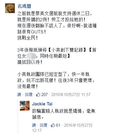 但更多是骂声:“不是号称最进步的‘立法’吗?原来只是个笑话”“台湾全部反对‘一例一休’不用支持民进党了”;