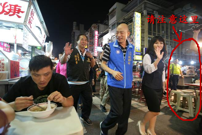 国民党高雄市党部主委韩国瑜8日晚率国民党籍议员在六合夜市主委庄其章陪同下到六合夜市逛了一圈,结果你猜怎么着?摊商比逛夜市的人还多,摆在中间的长桌、椅凳更是一片空荡。