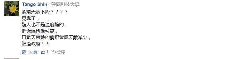 原本空气质量指针(AQI)超过70毫克就是“紫爆”,但台“环保署”将原有的空污检测标准重调后变成超过150毫克才是“紫爆”。所以去年台中市“紫爆”有99天,今年仅有19天……