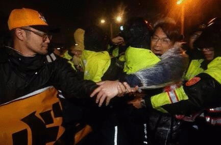 直到8日凌晨4点时,台北市警察局终于展开了“驱离”动作!据台媒报道,警方到场后,大声表示当天是上班日,“基于市民用路需要,要维护交通秩序”,加上“立委”禁食需人道考虑,因此实施“保护带离动作”,并动用了两辆大型警备车与两百多名警力排成人墙,以包围、分隔的方式,将现场静坐抗议的“立委”与民众分批送上警车,之后合计10男6女被警方带走。