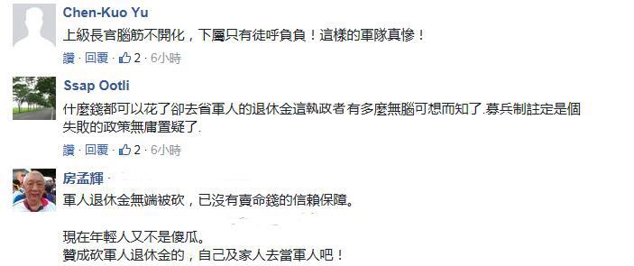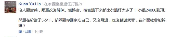 不少看到此图的网友也有感而发,有人说“这比算命摆摊还可怜”,有人叹“今天的招募员就是明天的你”,有人道“没了退休金的保障,募兵制注定失败”,有人骂“执政党把军人贬低成这样,没了尊严,自然招不到人”,有人盼“国民党快起来挽救军人的地位、尊严和福利”……当然,也有善良的网友向台防务部门谏言:招募应由专责单位负责,如此打游击式的摆摊召募,既无成效也伤台军形象。