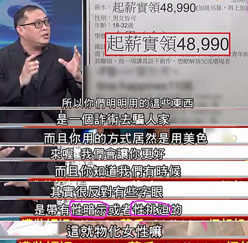除此之外,就连招个1年期志愿役军官都得靠将女士官军装照与Facebook、line联络方式放进夹娃娃机里的做法也让台湾政论节目主持人和嘉宾痛批:如此化浓妆、穿短裙,并带有“性暗示”的招募广告,不仅是一种“诈骗”更是物化女性的表现,“真的太欺负女军人了”。