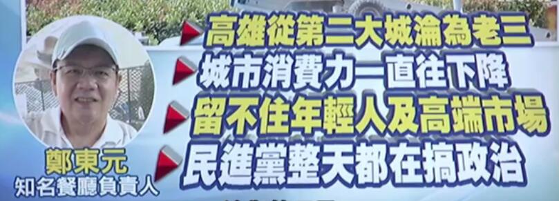 此外,在受访时郑东元还指出了高雄如今面临的几大问题:从过去全台第二大城沦为老三,城市整体消费力持续下滑,留不住年轻人及高端市场……他直言,如今高雄的经济出现了严重问题,而民进党却整天忙着搞政治,根本不关注基层百姓的经济民生及招商引资,痛批“民进党只会拼政治,不会拼经济”!