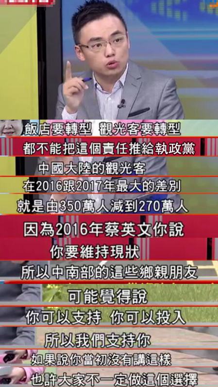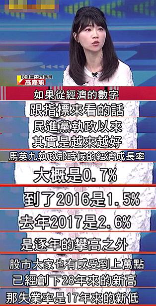 来看看这位民进党议员是如何为“铁票仓跳票”作解释的吧:民进党曾批判马英九是“数字治台”,而这个绿营小姐姐一上来就先祭出“数字阵”,说从经济指数上看,民进党与马英九执政时期好很多了啊;之后拿出“甩锅招”,说饭店倒闭有很多方面的原因啊,店家不要都怪到民进党身上,你们自己也要转型啊;接着开始“数政绩”,说陆客虽然不来了,但日本和东南亚客人有增加啊,而且像台中市长林佳龙之类的也有积极的帮地方在招商啊;最后搬出“诚恳脸”,表示虽然民进党做了很多“复兴经济”的事,但若人民感受不到,那蔡当局也会“好好检讨”……