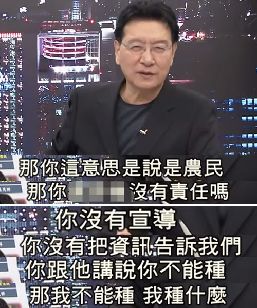 听完林聪贤这番话,台湾资深媒体人赵少康显然不淡定了,他表示,民进党当局不做事先的宣导,也没有分享相关资讯,只是一句轻描淡写的“聪明种”,就想要把责任推给农民吗?