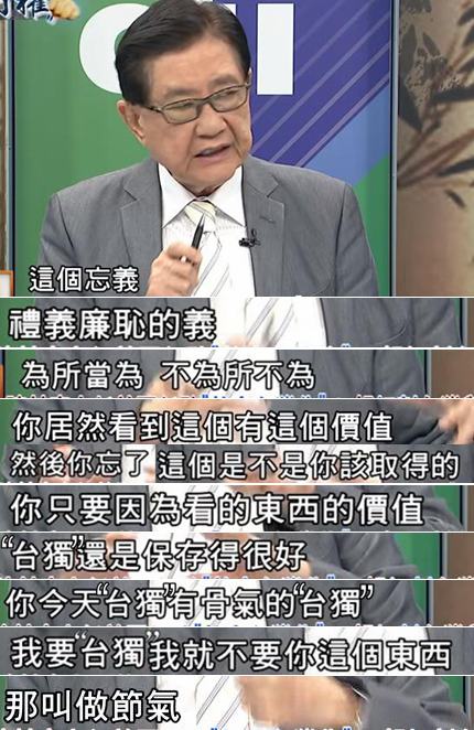 叶老是这样解释的:要搞“台独”却恬不知耻地要别人家好的东西,既没骨气又没气节,视为“无义”;