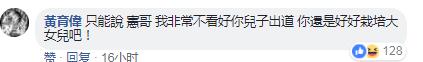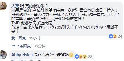 吴宗宪表示,儿子的贴文虽是私人领域,不涉及公共的问题,但觉得这样的发文并不OK,“我个人觉得,不该讲这种鸟话,自以为了不起,就让他承担后果,这样很好!”,他认为,儿子已为公众人物,应该要了解事情轻重,并承受后果,自己做了什么,就要负全部责任,他也就事论事的指出“看有没有需要,直接去关也很好”。