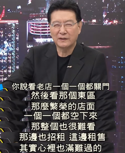 看到很多老店歇业倒闭、商圈没落、摊商市场沦为招租售牌基地,台湾资深媒体人赵少康也不免感叹,“心里非常的难过。”