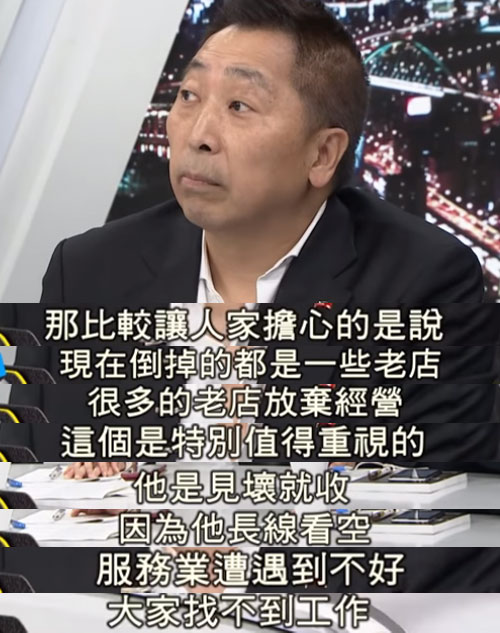 也许正是看到了台湾未来经济发展的诸多不确定因素,一些本没有受影响的老店也逐渐步入“闭门谢客”的浪潮,就像台湾资深媒体人唐湘龙所说,很多老店放弃经营,并不是因为他们见好就收,而是长线看空,见坏就收,这些情况才更值得台当局去重视。
