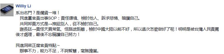 不仅如此,谢长廷还称“大陆派辆车接人”的新闻是“假消息”,连陆委会都“配合演出”地民众若想上大陆的救援车必须自认“我是中国人”方可,并指责大陆是“霸凌旅客”、“冷血作为”、“趁火打劫”……