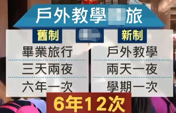 据悉“教育部”为配合台当局提高台湾旅游人数的要求,决定明年二月起试办将中小学生原本每年1次的户外教学,调整为每学期至少1次,并以2天1夜为目标,待新课纲上路后全面推动,预估此举将影响全台3000多所中小学,约180万名学生。