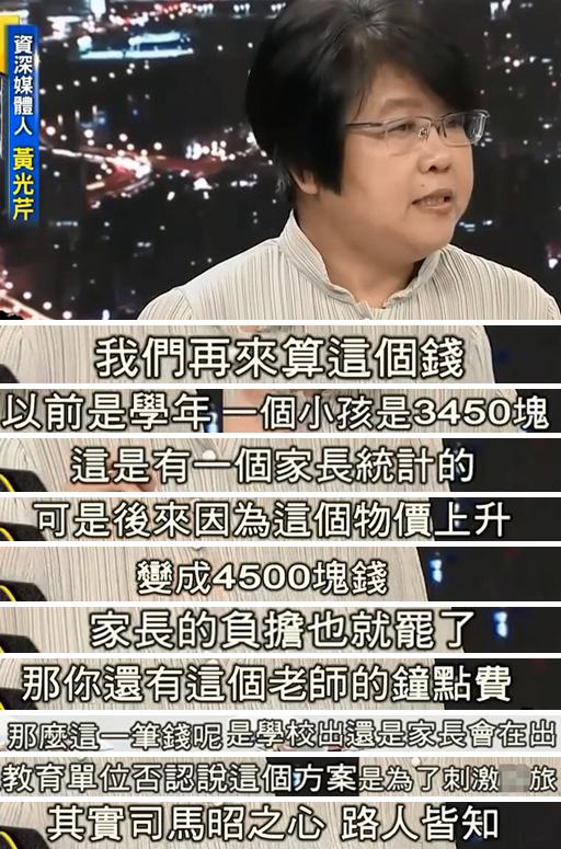 身为人母的岛内资深媒体人黄光芹不仅提出了三个问题,更直言台教育单位此举分明是“司马昭之心”!另一家长代表陈碧瑶也表示,从未看到有关此举的配套措施出现,质疑台当局是“把学生和老师当政策白老鼠”。