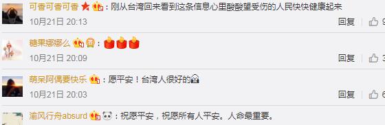 在评论中,绝大多数大陆网友都对此次罹难及受伤的台湾同胞表达了慰问与关心,祈福他们可以平安,“都是一家人不说两家话,祈福平安”;