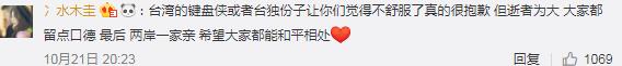 而面对小部分不理性的声音,有网友也呼吁大家“不要变成网络暴民”、“逝者为大”、“两岸一家亲”;