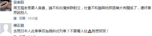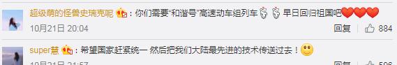 还有大陆网友听说出事列车是日本造,不禁喊话对岸的兄弟“用咱自己家的(列车)啊”,同时还发出“早日回归祖国吧”、“国家赶紧统一,这样大陆就能把最先进的技术传送过去啦”的呼唤;