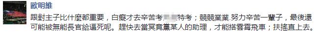 他指出“现在的蔡英文非常需要美国的帮忙,所以她要派她最相信的人”!因为接下来“2020‘大选’要到了,台湾有志大位的候选人都要出访美国,此时一定都要经过‘驻美代表处’,而且小英要‘联美抗中’,她身边一定要有个信得过的人”,这就是赵怡翔为什么要去美国的原因,“只能说跟对主子,比什么都重要,特考算什么!”