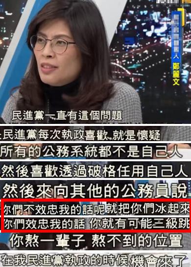 前“行政院发言人”郑丽文也直言,透过破格任用自己人而去警告其他非效忠者,是民进党每次执政时的套路。