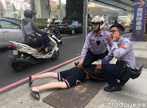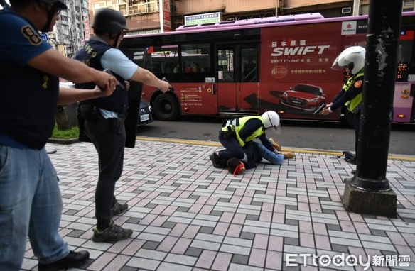 10日下午14时,高雄市人行道上,一名戴着赛车竞技手套、身高约180公分的男子被警方压制在地上动弹不得,直喊“不要压我,我不会跑啦”。