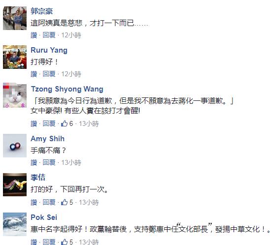 国民党副主席郝龙斌就在评论此事时直指“这一耳光,官逼民反”!他表示“文化部长”郑丽君被同样姓郑的宗亲打了一巴掌想必感到很痛,但更多人因为刨根“去中国化”而锥心之痛、遍体鳞伤;他同时剑指整个民进党团,称有人振振有词、谴责暴力,但民进党一连串文化刨根洗脑、“去中国化”,数典忘祖,不仅是另一种“不见血的血滴子”,更是“思想上的暴力霸凌”。
