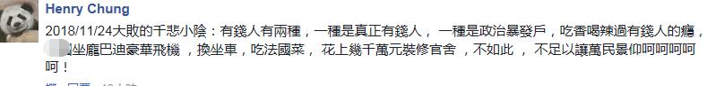 台湾包袱铺,官邸不好住!我是至今仍坚守在岗位上兢兢业业工作的大侃子~都说“人怕出名猪怕壮”,国民党籍的韩国瑜自去年在“九合一”大选中重挫绿营“老巢”、夺下高雄后便名声大噪、人气高涨,连昔日与韩国瑜水火不容的王世坚貌似也有被韩“圈粉”的迹象。但是,在“看你不顺眼,就想找你茬儿”的人眼中,这一切又被赋予了不一样的意义:这不近日化身“财神爷”的新任高雄市长韩国瑜,就因“不住官邸”的事儿而被批是“戏精”!
