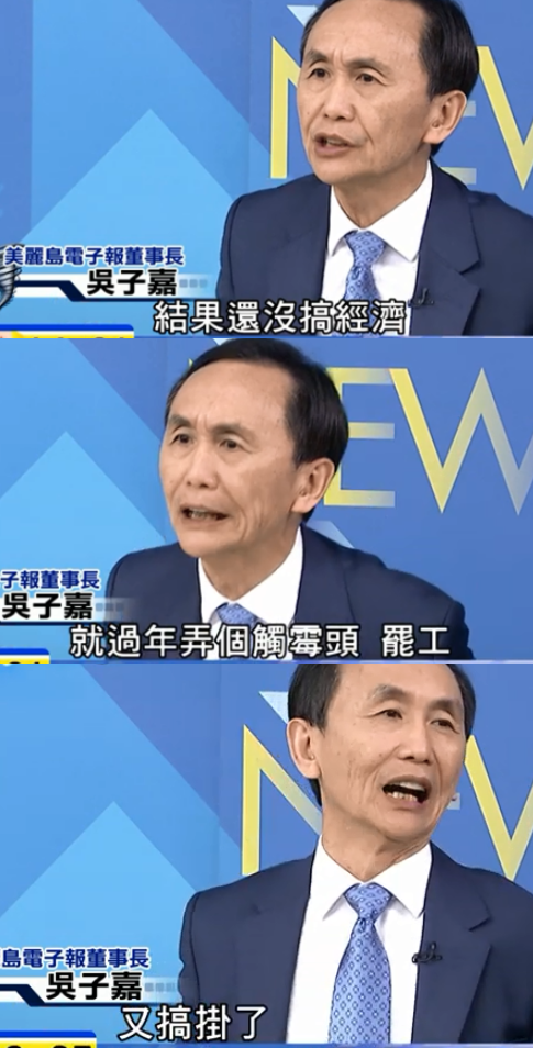 关于这件事,台湾资深媒体人吴子嘉一点不给面子,上来就是一套“劈头盖脸掌”。