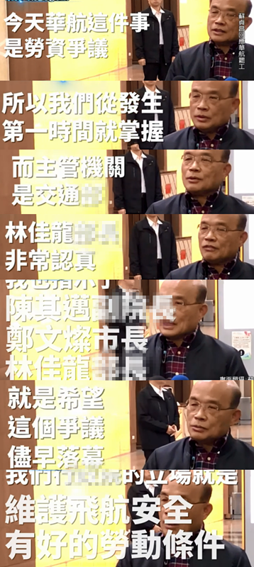 终于,华航机师罢工第五天,苏贞昌与民进党“立委”春酒餐叙时才受访首度回应。