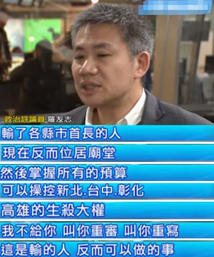 “输了各县市首长的人,现在反而位居朝堂,掌握所有预算,操控生杀大权”,政治评论员罗友志的哀叹与台湾网友的看法不谋而同……