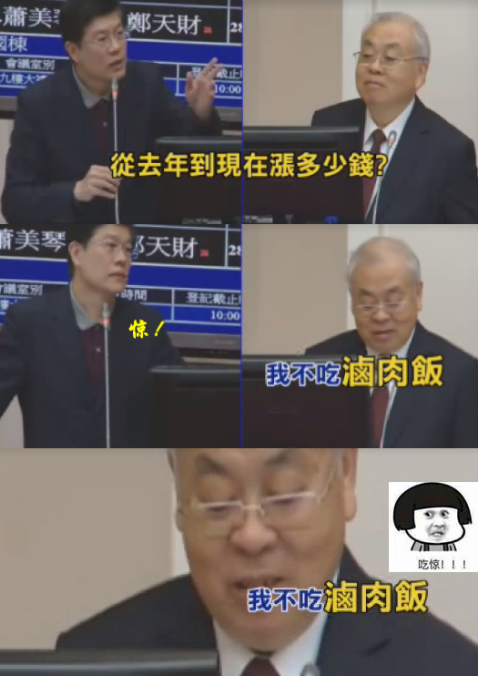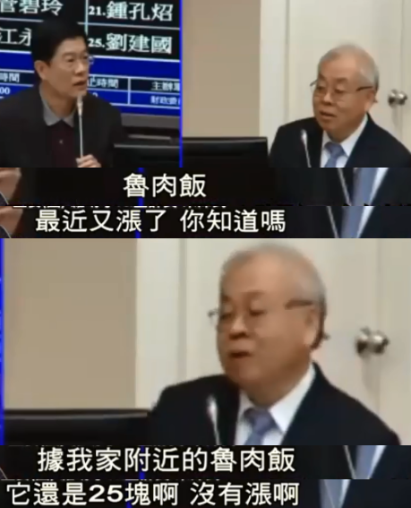 下面撩叔就为大家回放一下当时的具体情景。近日,“立委”罗明才在“立法院财委会”质询朱泽民,话题首先从卤肉饭开始。罗问朱,最近卤肉饭涨价了你知道吗?朱的回答很清奇,我家门口那家就没涨~