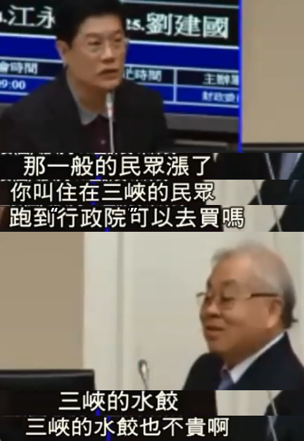 这种答案有任何逻辑吗?气得“立委”呛声,按照你的说法,难道住在三峡、台中等等各地的一般民众都要到“行政院”吃饺子吗?你猜朱泽民回了句什么?“三峡”的水饺也不贵呀~