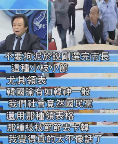 王世坚在政论节目中,首先试图对自己的身份进行一次明确的定位。当他表示自己不是“韩粉”时,立即遭到了嘉宾的回击,有人表示,他离“韩粉”只有一线之隔了;也有人表示,王世坚应该是“冰粉”(韩国瑜女儿韩冰的粉丝);还有嘉宾提出了“正确答案”:你是“柯黑”。