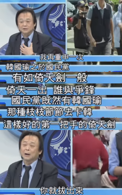 说到兴奋处,王世坚更强调,韩国瑜之于国民党有如倚天剑,“倚天一出,谁与争锋”,那国民党就该不吝啬拔出这把兵器,不要到时候2020输了,又怪兵器不好。