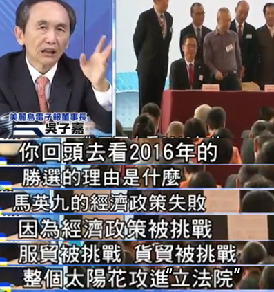 吴子嘉分析,为什么当年民进党能够上台执政,就是靠着“太阳花运动”搞垮了马英九当局的服贸协定和货贸协定,让马当局的经济政策失败,趁机得逞。