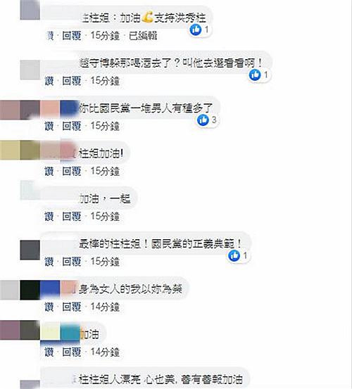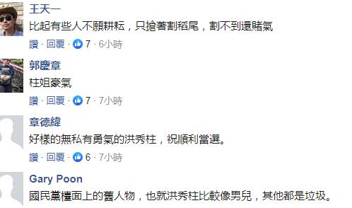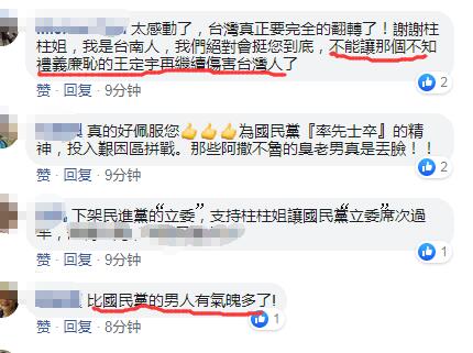 当然,对于国民党内的“老男人们”,网友的抨击也是没有客气的,“国民党这些权贵真该汗颜,柱柱姐加油”、“比国民党的男人有气魄多了”……