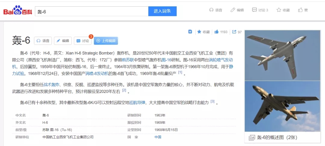 至于轰-6能携带核武器这事,也压根不是什么秘密,中国各大网站的百科页面都清清楚楚写了这点,对关注军事的人来说,这点已经算是常识了。